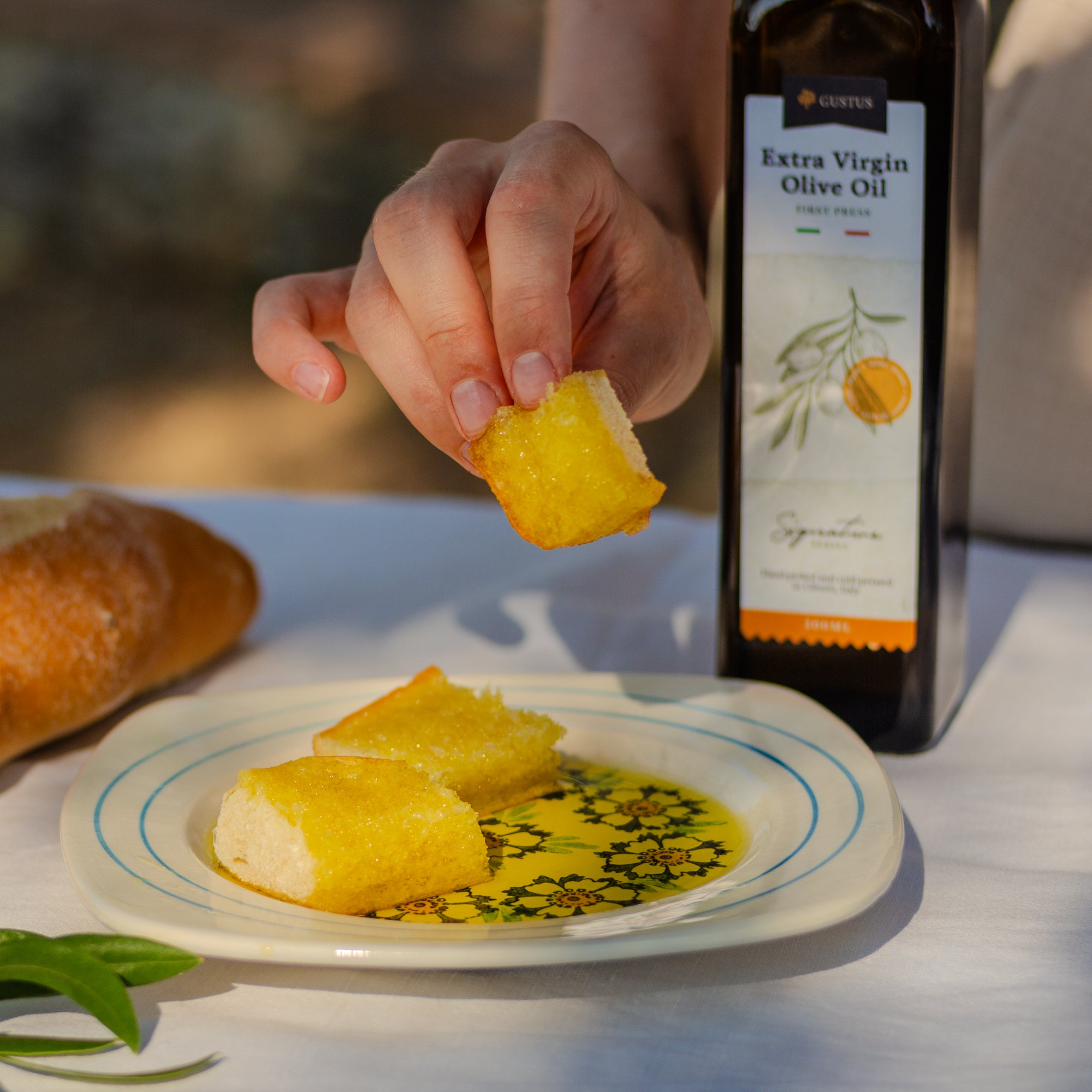 Today, Gustus continues that tradition through the production of organic, hand-picked extra virgin olive oil. Each bottle is a connection to generations past, to the care taken in every grove, and to the simple joy of sharing God’s gifts with others – now all over Europe.