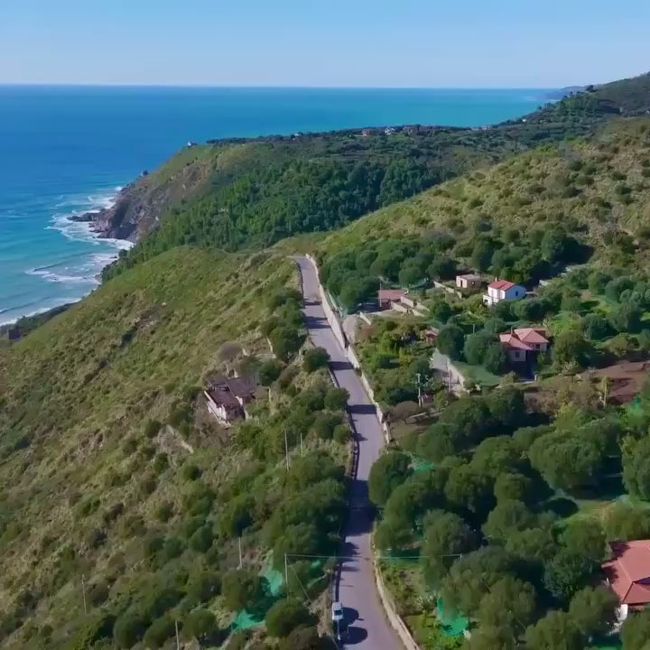 Our olives grow in Cilento National Park, on the hills that rise above the Mediterranean Sea. Here, every tree clings to a slope, there are no flat fields. Harvesting means climbing, carrying, and working against gravity. It is difficult work, but it is also honest work, and worth every effort.
